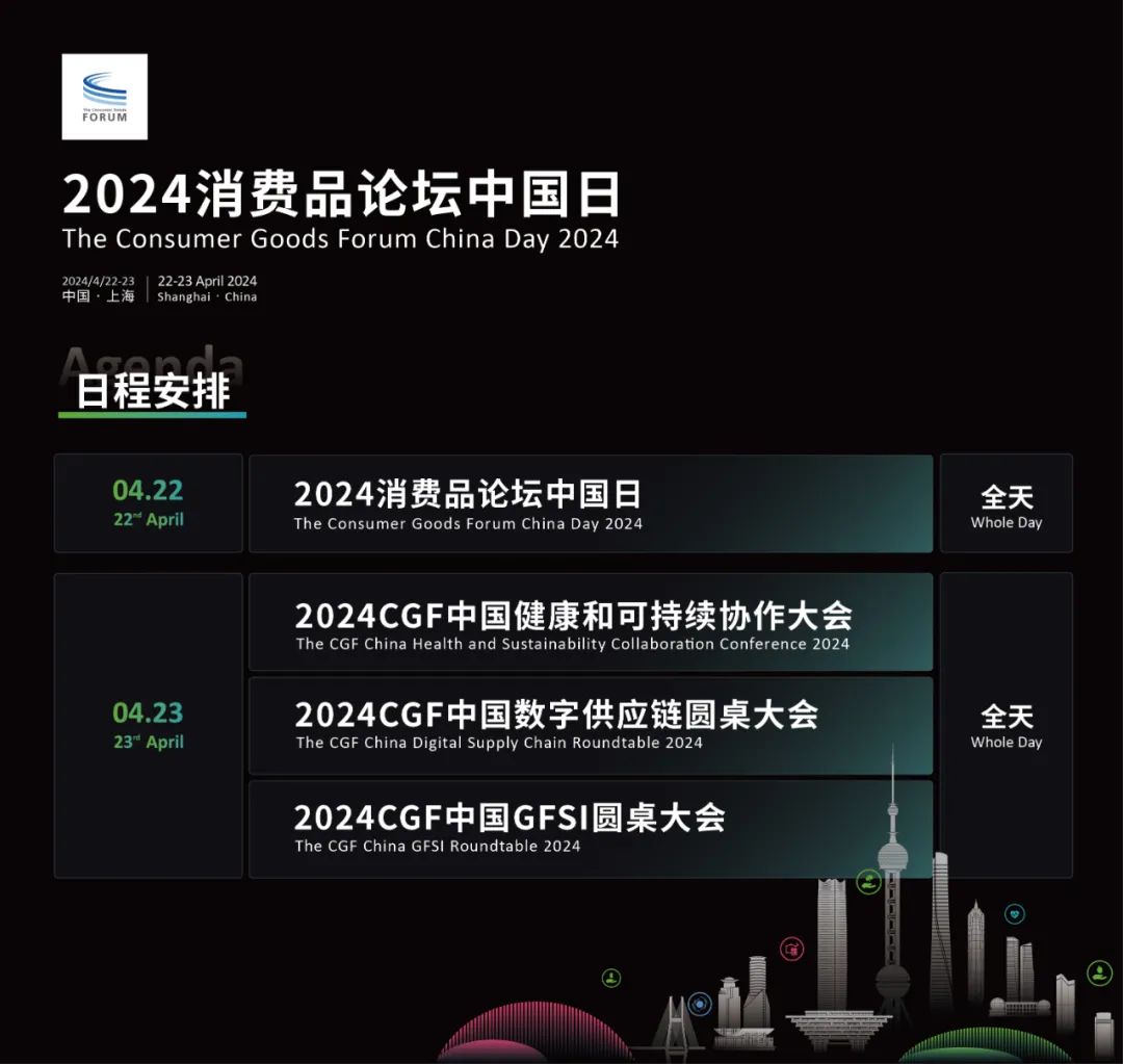 本屆中國日的第二天(4月23日),三場平行大會也將分別聚焦食品安全,更健康的生活,可持續(xù)發(fā)展和數(shù)字供應(yīng)鏈四大板塊。