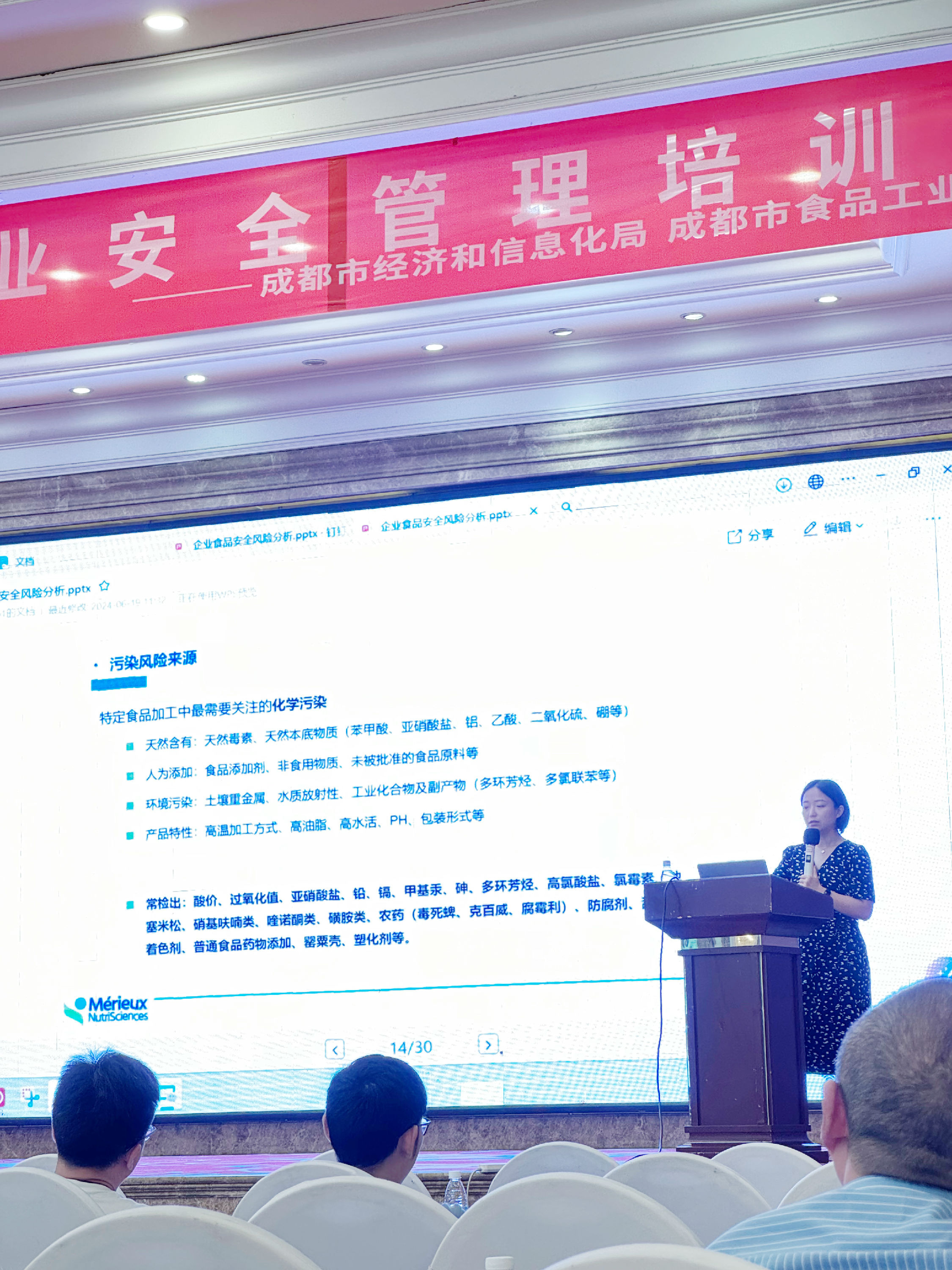 在這四期培訓(xùn)中,梅里埃中安檢測(cè)的技術(shù)經(jīng)理梁菡峪老師和產(chǎn)品經(jīng)理潘玥老師,憑借扎實(shí)的專(zhuān)業(yè)知識(shí)和豐富的實(shí)踐經(jīng)驗(yàn),為參會(huì)者提供了關(guān)于《食品安全風(fēng)險(xiǎn)分析》的深入講解。有效增強(qiáng)了企業(yè)對(duì)食品安全風(fēng)險(xiǎn)管理的認(rèn)知與掌握,提供了切實(shí)可行的策略和實(shí)例,助力企業(yè)降低食品安全風(fēng)險(xiǎn)。
